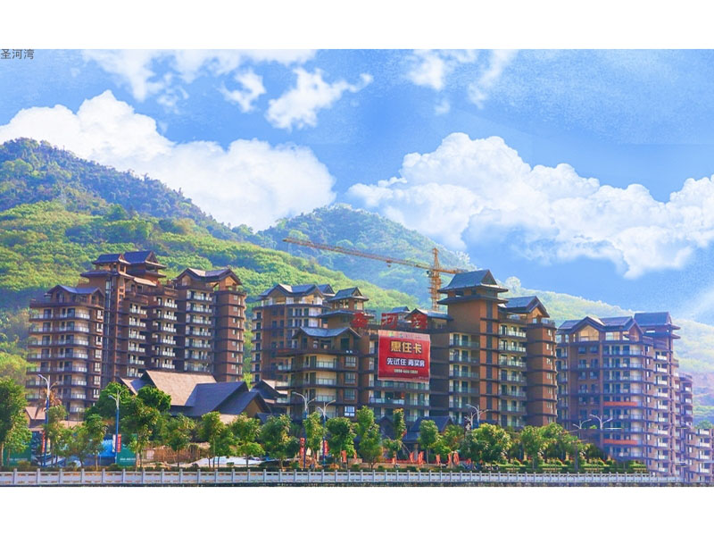圣河湾地处五指山市翡翠新区,西毗邻广场,南紧临南圣河,依山傍水,项目周边规划有酒店、酒吧风情街、影剧院、民族风情园等公共配套设施,将给该区域居住人群带来丰富、便捷的度假生活