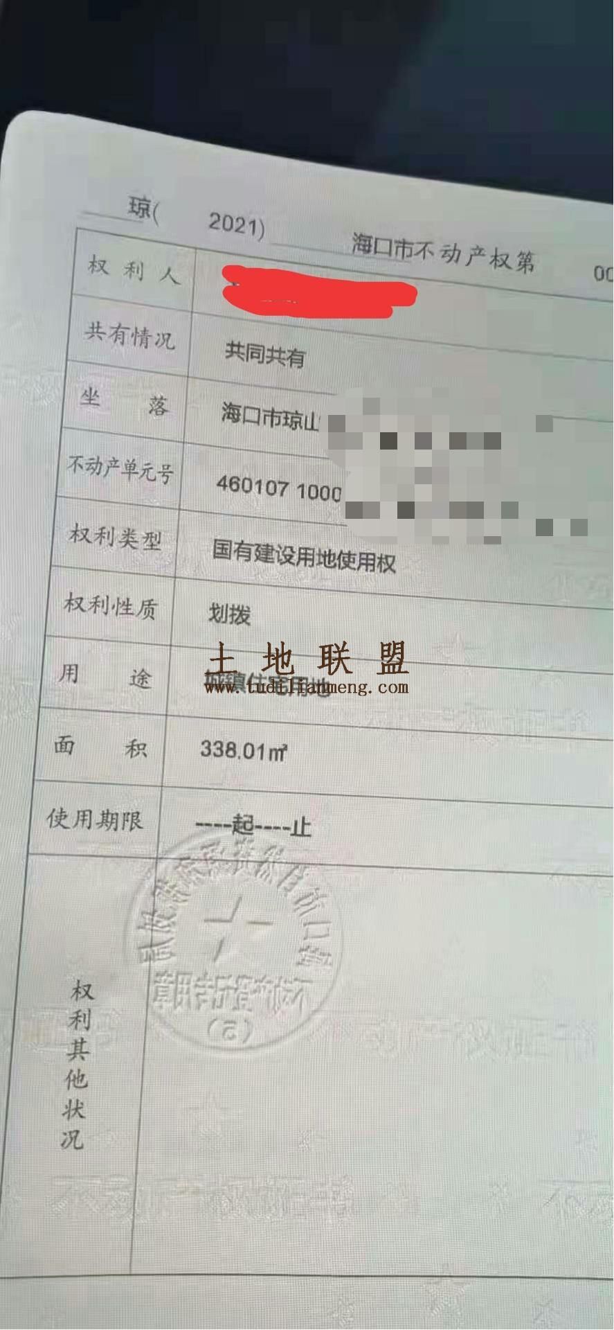 > 海口府城338平米划拨地转让
