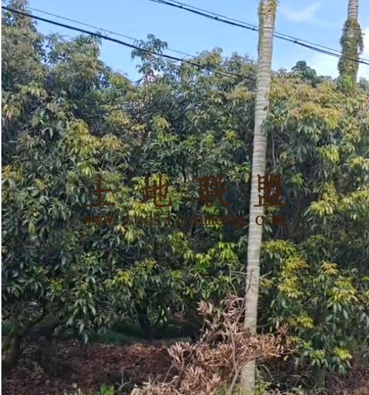 地块现状:地里现种植约2350棵荔枝昀10年树龄,有约600棵妃子笑,约1750棵白糖樱,已铺设好灌溉设施,地势平坦,地里有生活住房。