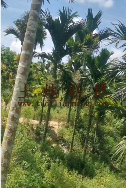 土地现状:地里现种植约2500棵槟榔10年树龄,地里已铺设好灌溉设施,地势平坦,有简易铁皮房。