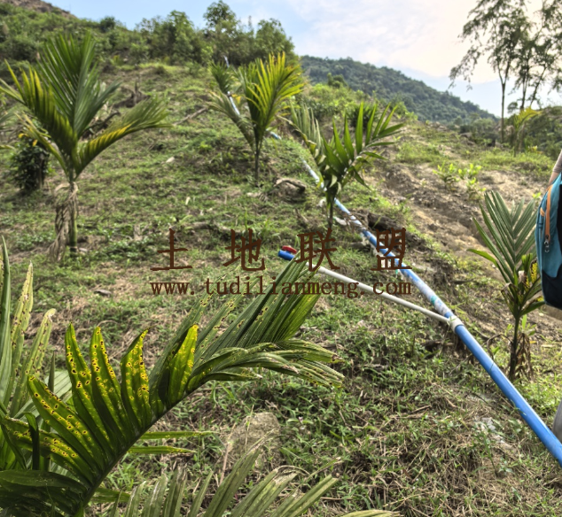 地块现状:地里现种植约2000棵槟榔刚种植一年,剩余的是橡胶树地主负责砍伐,地势为平缓坡地。