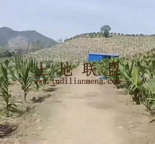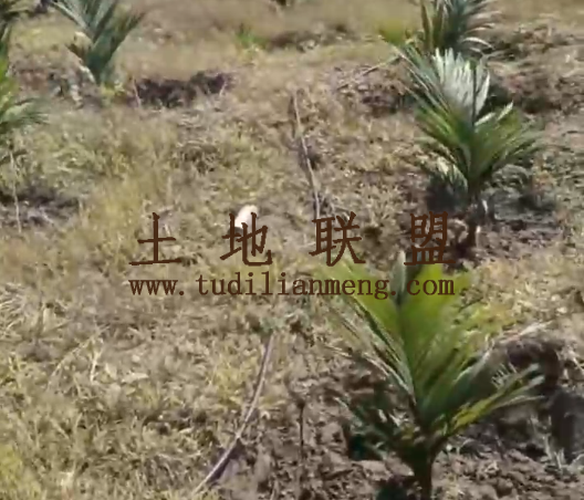 地块现状:地里现种植约11000棵槟榔9个月树龄,地里已铺设好灌溉设施,地势为缓坡地,地里有铁皮生活住房。