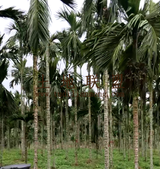 地块现状:目前种植约9000棵十多年树龄槟榔,地势平坦,有简易看护房。