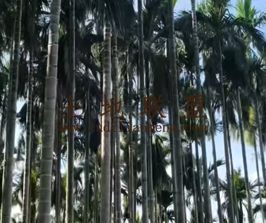 地块现状:目前种植约3000棵高产期槟榔树,灌溉设施齐全,有看护房。